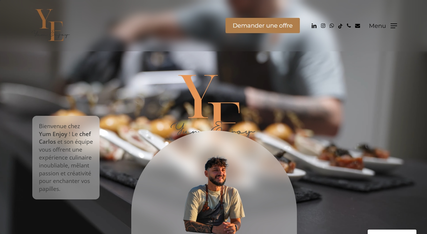 Jeune cuisinier talentueux et passionné, a transformé son rêve en réalité en fondant « Yum Enjoy », un service traiteur qui propose des expériences culinaires inoubliables.